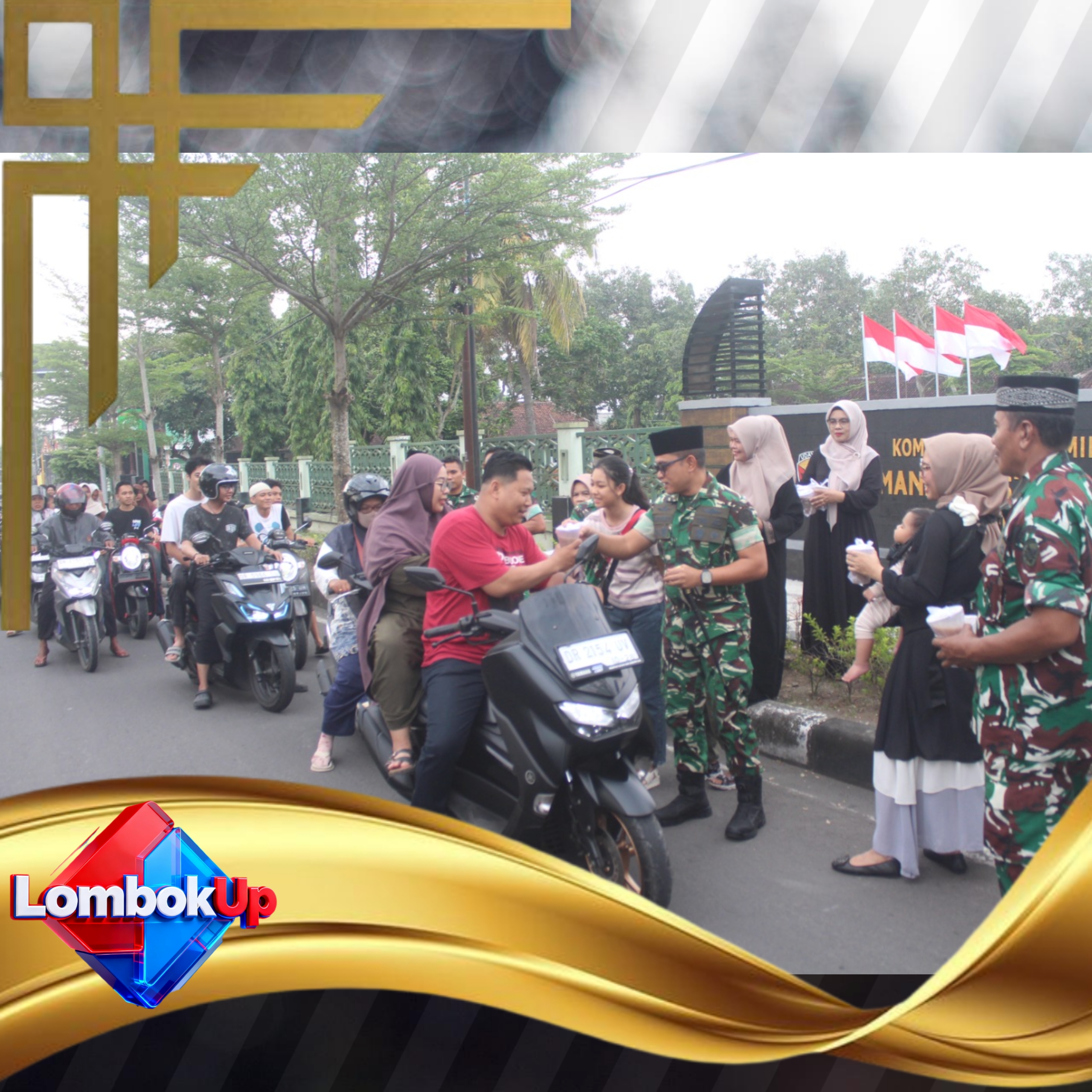 Lombok Tengah, (lombokUp) – Dandim 1620/Loteng, Letkol Arm Karimmuddin Rangkuti, bersama Ketua Persit KCK Cabang XXX Dim 1620, Ny. Hanna Karim Rangkuti turun langsung ke jalan untuk membagikan ratusan paket takjil kepada masyarakat dan pengguna jalan yang melintas di depan Makodim, Jum’at (20/2/2026).